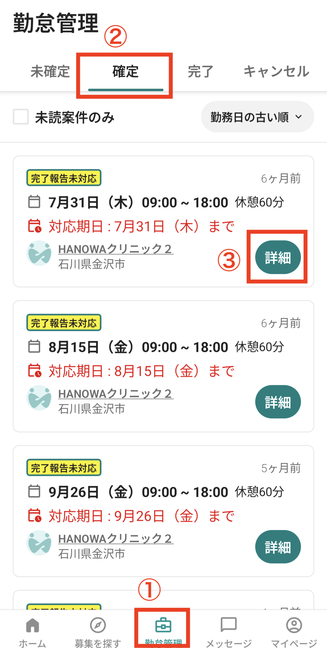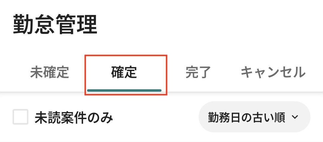 キャンセルしたい案件が「確定」タブにあることを確認します。