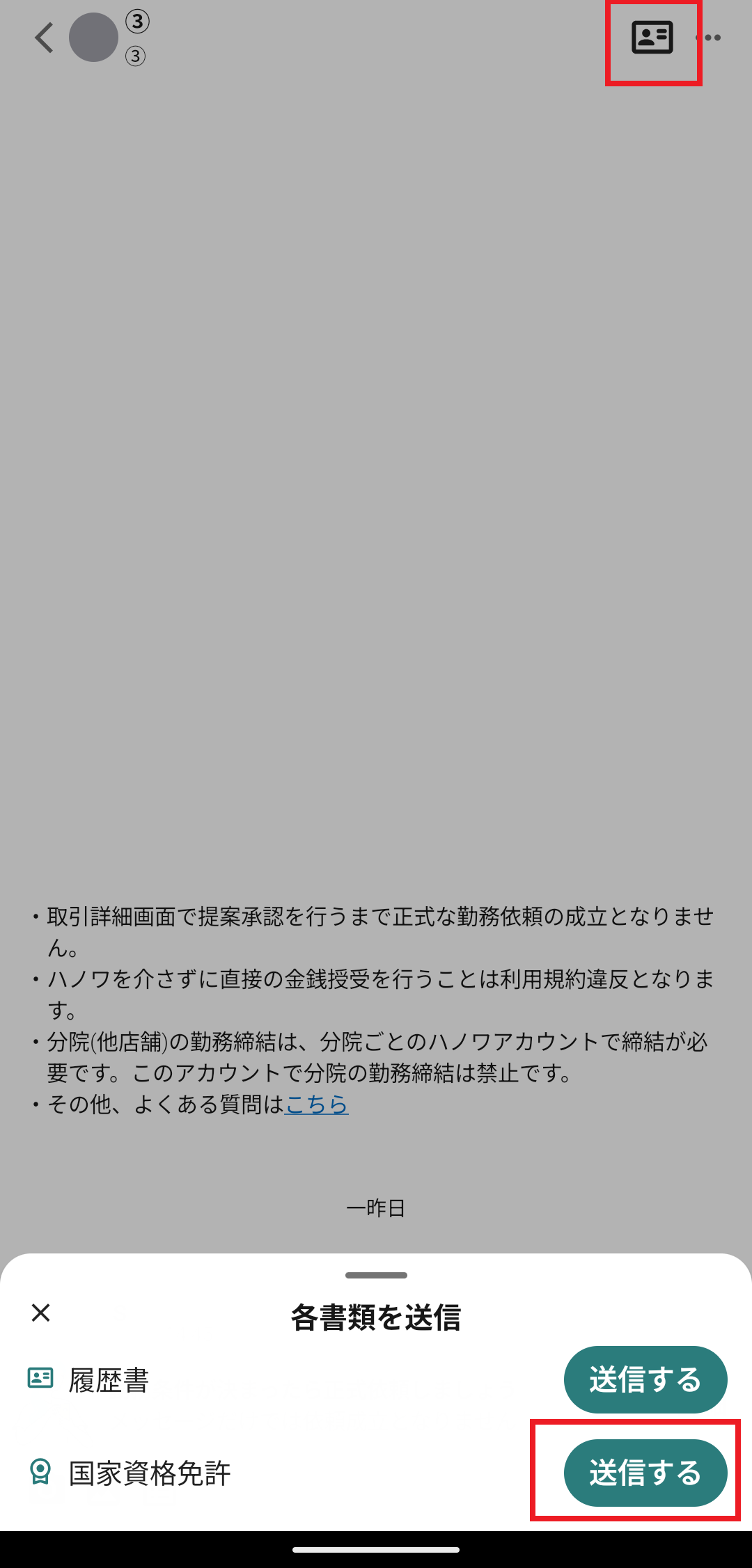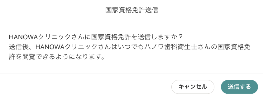 ハノワ勤務時に歯科医院から国家資格免許証の提出依頼があった場合は、依頼に応じ提出が必要です。ハノワでは歯科医院がパートナーの国家資格証をダウンロードできる機能があります。
