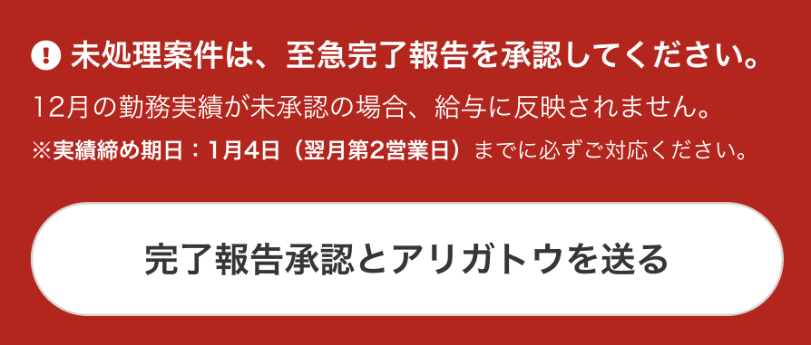 なお、完了報告が翌月2日 18:00までに承認済にならない場合、