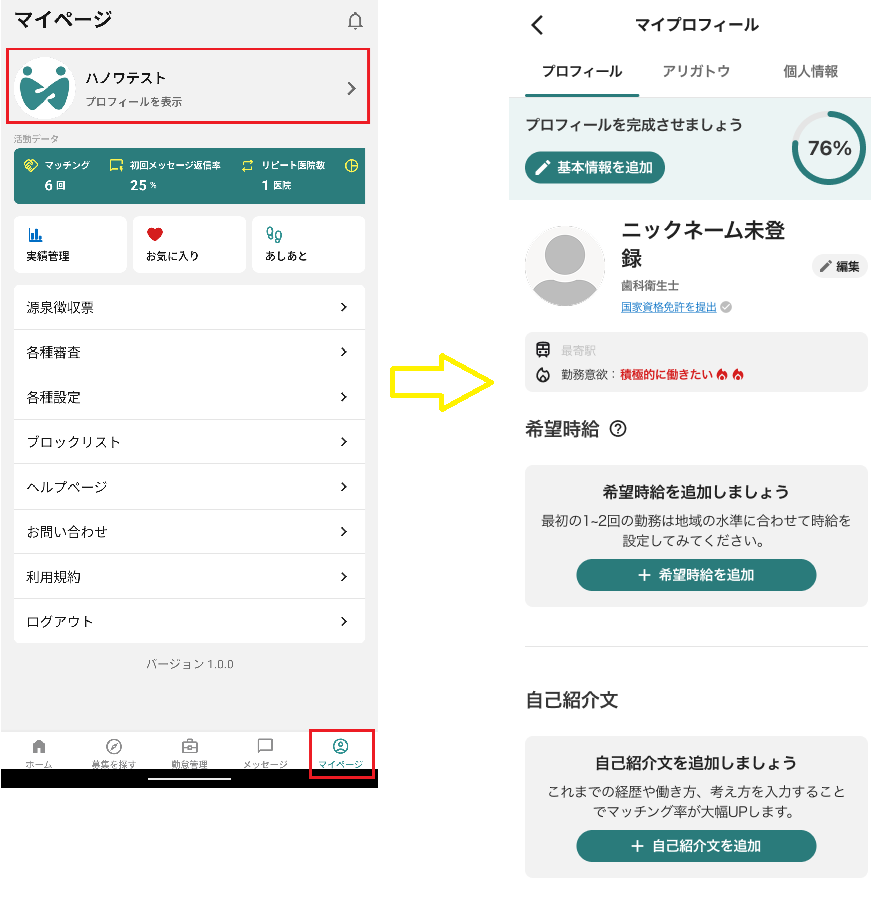 ※運営にて審査が承認されるとプロフィールに国家資格確認済みと表示されます。