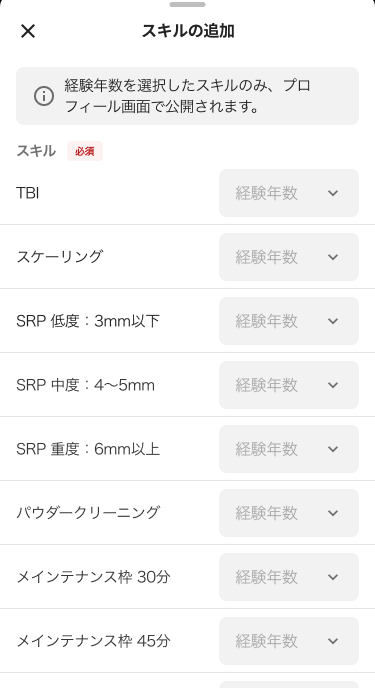 ・「スキルを追加」をタップ!→これまでに経験した年数を選択して保存!