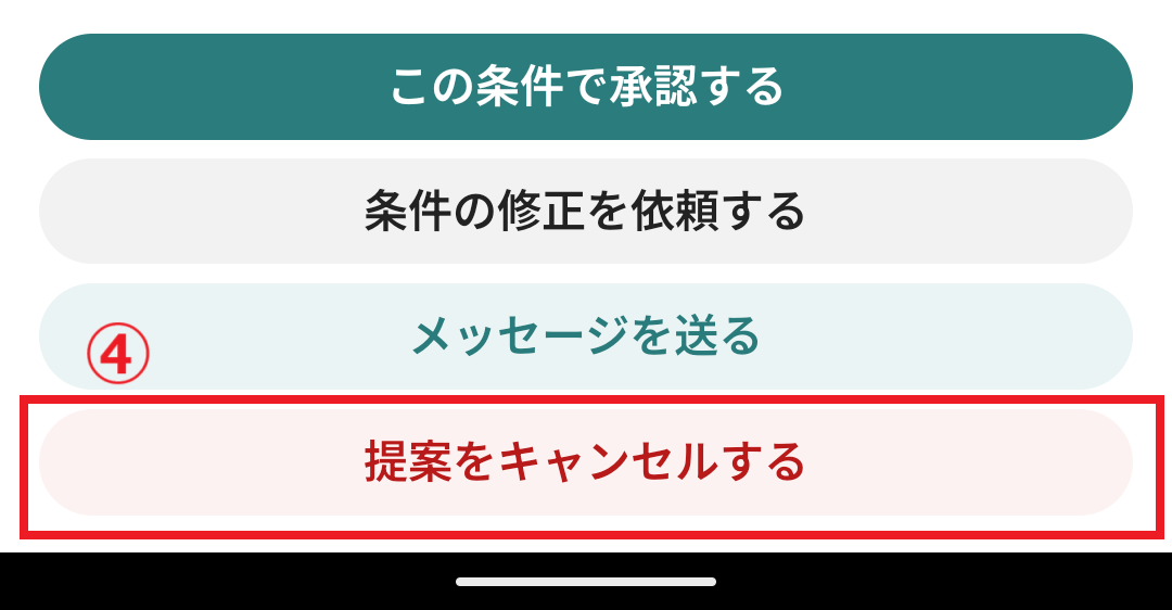 4ステップ: 取引詳細ページの下部[提案をキャンセルする]タップ