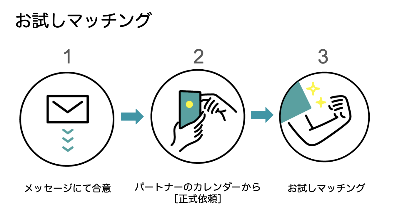 Q.メッセージでお試しマッチングに行くことになりました。その後の処理は何が必要ですか?